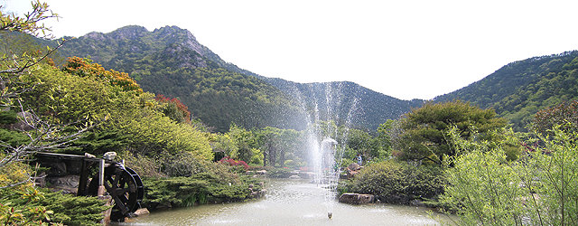 작은 나무토막들을 뿌리거나 자갈을 깔아둔 산책로는 폭신한 스폰지 같아 오래 걸어도 발이 아프지 않다. 곳곳에 설치된 원두막과 흔들의자는 방문자들에게 든든한 쉼터가 되어주고 있다. 흐르는 계곡 물을 이용해 만든 폭포와 몇 개의 분수도 여름철 흐르는 땀방울을 식혀주는 고마운 것들. 따로 공간을 한정하지 않았기 때문에 산의 능선 따라 흐르듯 이곳저곳 둘러보면 된다.